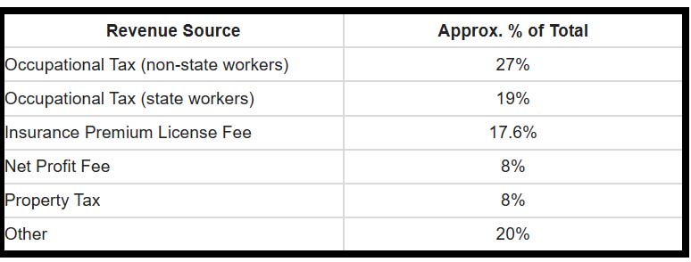The occupational tax is by far our largest source of revenue. This small percentage collected on wages earned within the city provides 46% of the City’s projected revenue for Fiscal Year 2026. The insurance premium tax is the next-largest contributor.